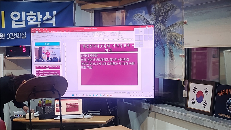 저녁 6시 30분, 이희규 전 16대 국회의원이 가장 먼저 강단에 올랐다. 그는 ‘대한민국의 미래 전략’을 주제로 국가와 사회 전반의 흐름을 인문학적으로 풀어냈다. 세계 질서의 변화, 기술 중심의 미래 산업 구조, 대한민국이 선택해야 할 전략적 방향 등을 다양한 사례와 논리를 통해 제시하며 참석자들의 몰입을 이끌어냈다. 단순한 정치·경제 강의가 아닌, 국가의 미래 속에서 개인이 어떻게 준비해야 하는지까지 짚어낸 그의 강의는 수강생들에게 깊은 울림을 남겼다. 강의를 들은 한 원우는 “앞으로의 세상을 어떻게 이해하고 대비해야 하는지 큰 방향성을 얻을 수 있었다”고 소감을 전했다.