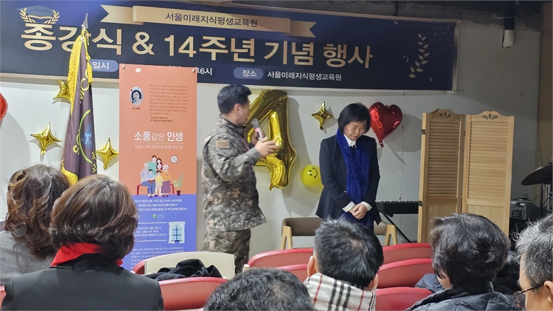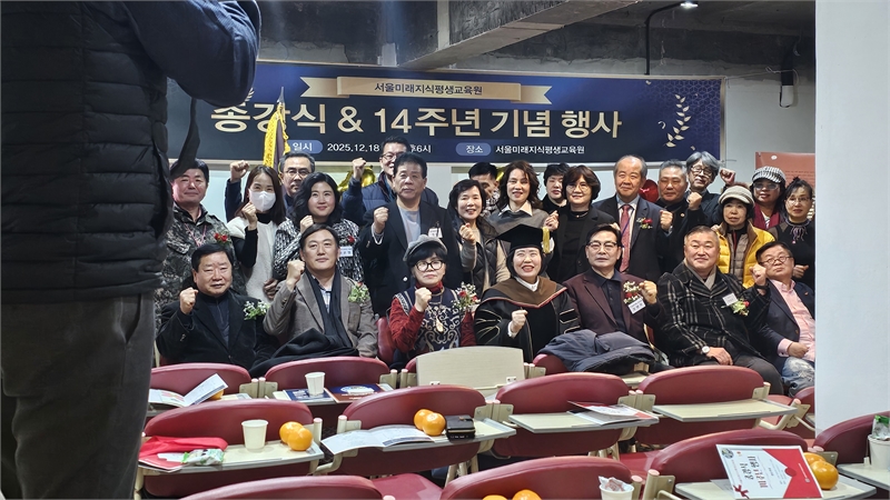 서울미래지식평생교육원이 12월 18일, 개원 14주년을 맞아 종강과 기념을 함께하는 행사를 열었다. 이날 기념식은 단순한 연말 행사나 종강식이 아니라, 배움이 사람의 삶을 어떻게 바꾸는가를 조용하지만 깊이 있게 보여준 자리였다.
